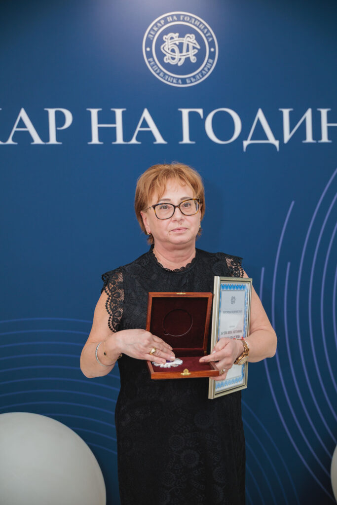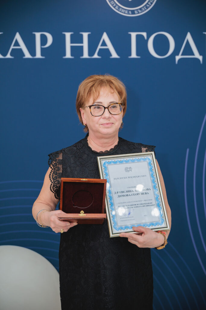 На 20.10.2025 г. на официалната церемония на БЛС в гр.София, в категорията „Принос в развитие и утвърждаване авторитета на съсловната организация“ на Национално ниво беше наградена